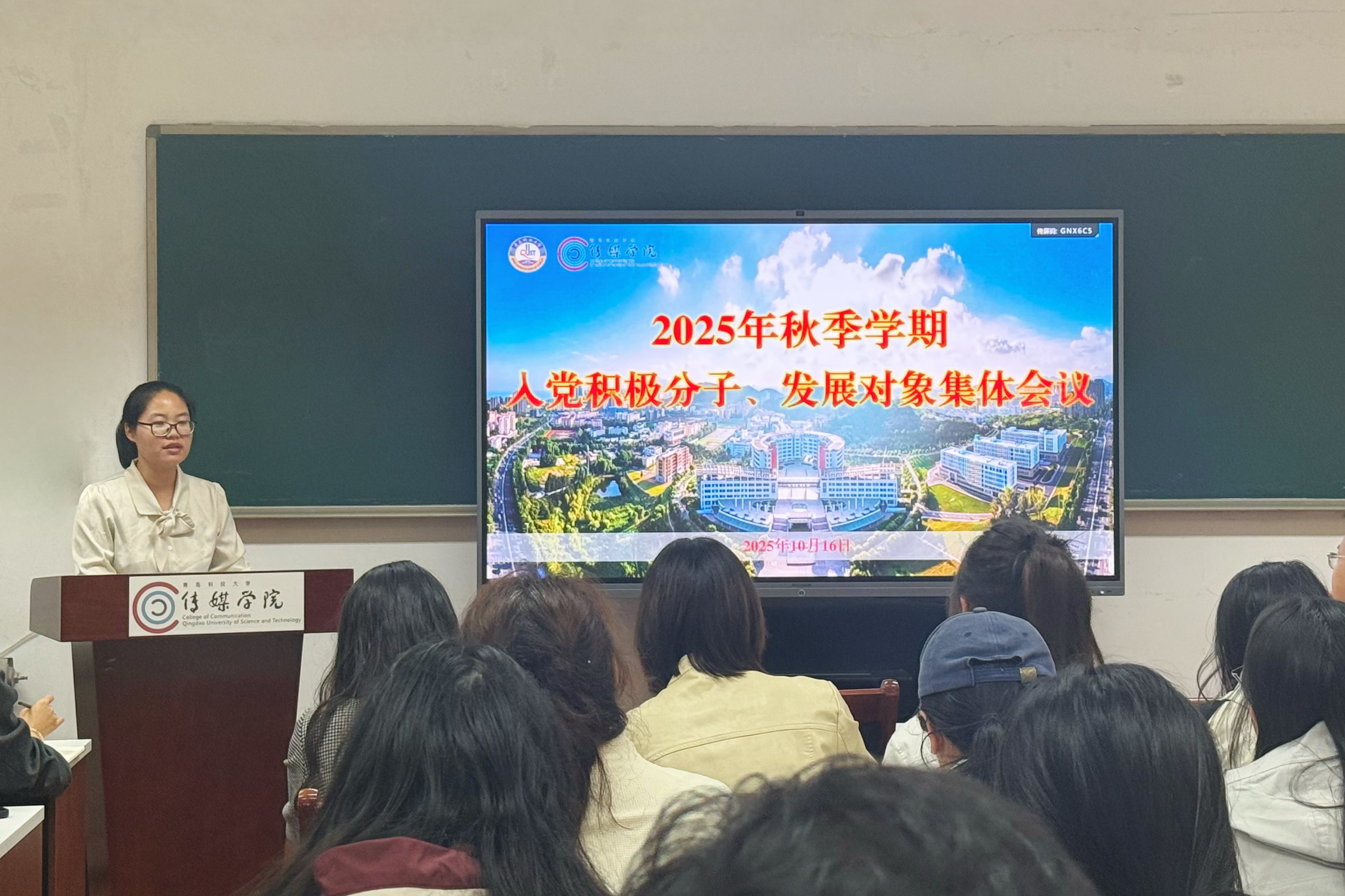 刘海波强调了学院组织发展的标准、条件及程序要求,并对与会学子提出三点希望:一是坚定理想信念,加强党性修养,提升自身综合素质。要以习近平新时代中国特色社会主义思想为指导,持续深化理论武装,做到思想上对标、行动上紧跟、落实上用力,在日常学习生活中亮身份、树标杆,自觉主动维护学校的各项决策部署,将个人成长融入学院发展大局。二是提高政治站位,端正入党动机,锤炼优良作风习惯。全体入党积极分子和发展对象要始终把政治标准放在首位,严守纪律规矩,做到“政治强、业务精、纪律严、作风正”,在学习科研、学科竞赛、宿舍治理、志愿服务、社会实践中发挥表率作用,加强作风锤炼。三是强化责任担当,练就过硬本领,奋力争做时代新人。要学出传媒范、亮出小漫牌,对照党员标准,将责任放在心上、扛在肩上,主动投身实践熔炉,练就过硬本领,以专业素养服务经济社会发展,争做有理想、敢担当、能吃苦、肯奋斗的青科传媒人。